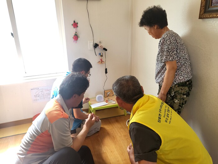단밀면은 관내 의용소방대원, 지역사회보장협의체 위원, 마을돌보미 위원 40여명과 연계·협력하여 대상가구를 3인 1조로 방문 설치하고 찾아가는 보건복지 상담 및 안부 확인을 병행하였다.