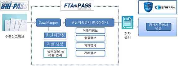 | ▲FTA-PASS에서 UNI-PASS 연계 원산지증명신청 방식. |