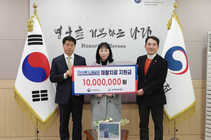 서울 용산구 서울지방보훈청에서 열린 이번 지원금 전달식에는 자생의료재단 신민식 사회공헌위원장(잠실자생한방병원장)과 박민식 국가보훈처장 등 양 기관 주요 인사들이 참석했다. 이어 전몰·순직 군경 가족 돌봄사업 ‘히어로즈 패밀리’ 대상자인 유재국 경위의 유가족에게 지원금 1000만원을 전달했다.