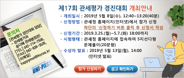 | ▲2019년 제17회 관세평가 경진대회 개최 계획 공고.(출처=관세청) |