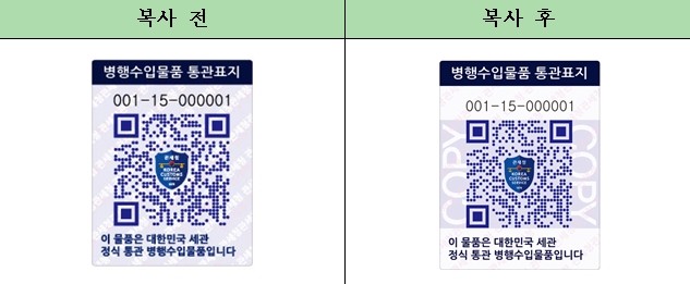 TIPA에 따르면 진짜 통관표지는 복사할 경우 ‘COPY’라는 문구가 나타나게 되며 열을 가할 시 배경의 ‘관세청’ 글자가 사라진다.
