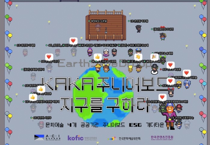 ▲27일 콘진원은 문화예술분야 공공기관과 함께 메타버스에서 'KAKA(KOCCA·ACI·KOFIC·ARKO) 주니어보드 지구를 구하라!' 워크숍을 개최했으며, ESG 경영과 지속가능한 환경에 대해 논의했다. |