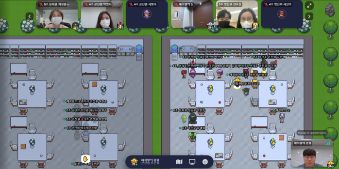 ▲27일(수) 콘진원은 문화예술분야 공공기관과 함께 ESG 경영과 지속가능한 환경을 주제로 'KAKA(KOCCA·ACI·KOFIC·ARKO) 주니어보드 지구를 구하라!' 워크숍을 개최했다. 코로나19 확산 방지를 위해 메타버스 플랫폼 '개더타운'을 통해 진행했으며 기념사진을 찍고 있다. |