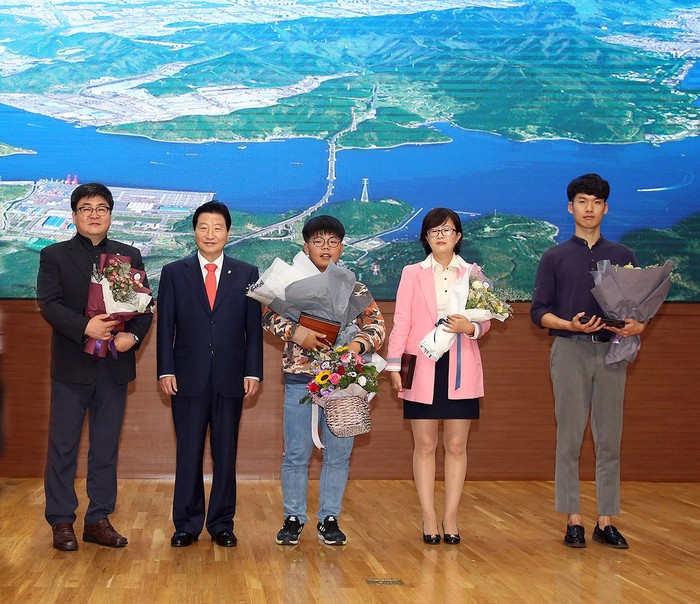| ▲수상자들이 안상수 시장과 기념촬영을 하고 있다.(창원시청 제공) |