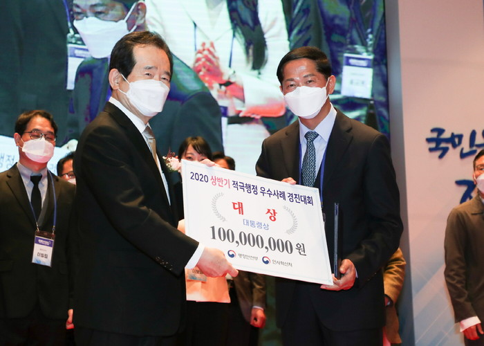 [로컬세계 강영한 기자]경기 고양시(시장 이재준)는 지난 18일 오후 행정안전부·국무조정실·인사혁신처가 주관해 정부세종청사 대강당에서 열린 '2020년 적극행정 우수사례 경진대회'에서 대통령상(대상)을 수상했다고 19일 밝혔다.