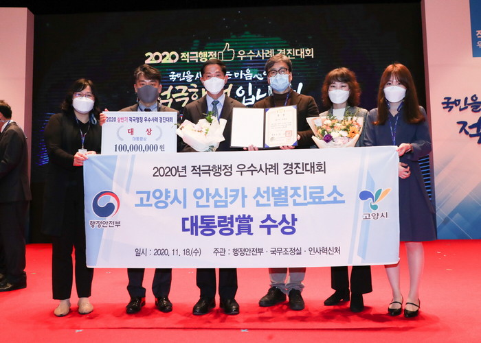 고양시 ‘안심카 선별진료소’가 대통령상을 받았다. 대상을 수상한 고양시에는 특별교부세 1억원이 수여된다.