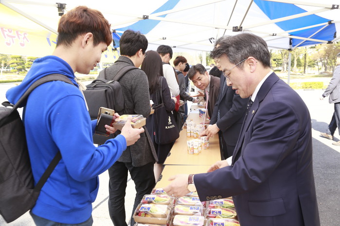이른 아침부터 출근해 학생들에게 천원의 아침식사를 나누어준 곽병선 총장은 “아침 식사를 거르고 등교하는 학생들이 많아 평소 안타까움이 컸다”면서 “최소한 시험기간만이라도 학생들이 든든한 식사를 할 수 있도록 하고 싶어 이를 공약사항으로 제시했고, 재임기간 동안 그 약속을 충실히 지켜나가겠다”고 전했다.