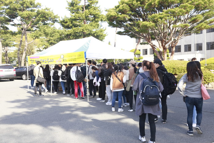 [로컬세계 양해수 기자]전북 군산대학교는 19일 오전 대학본부 앞 광장 일대에서 학생·취업지원처 주관으로 “2018 따뜻한 천원밥상” 행사를 실시했다고 밝혔다.