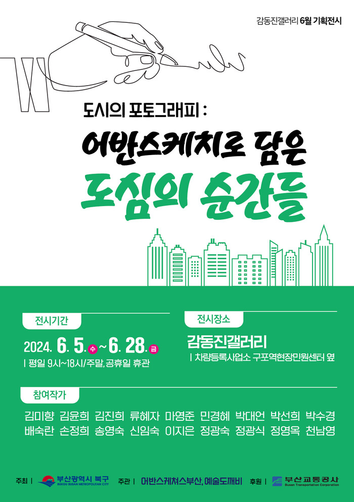 [로컬세계 부산=김의준 기자]부산시 북구는 오는 5일부터 28일까지 감동진갤러리(도시철도 3호선 구포역 내)에서 ‘도시의 포토그래피:어반스케치로 담은 도심의 순간들’을 개최한다고 3일 밝혔다.