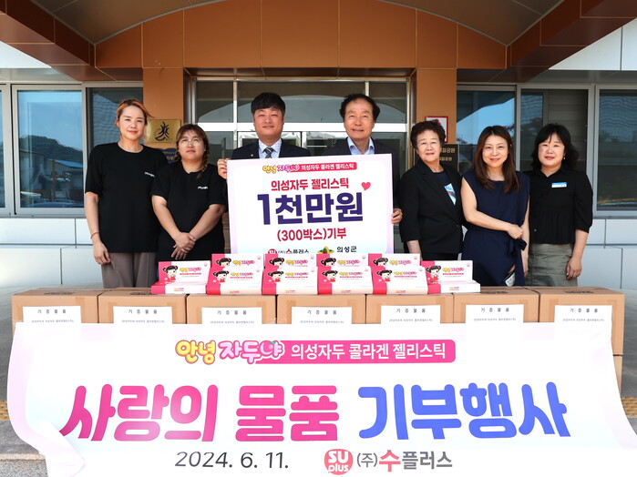 [로컬세계=박상진 기자]경북 의성군은 지난 11일 ㈜수플러스에서 지역사회 내 아동들을 위해 써달라며 콜라겐 자두젤리스틱 300세트(1350만원 상당)를 기탁했다고 12일 밝혔다.