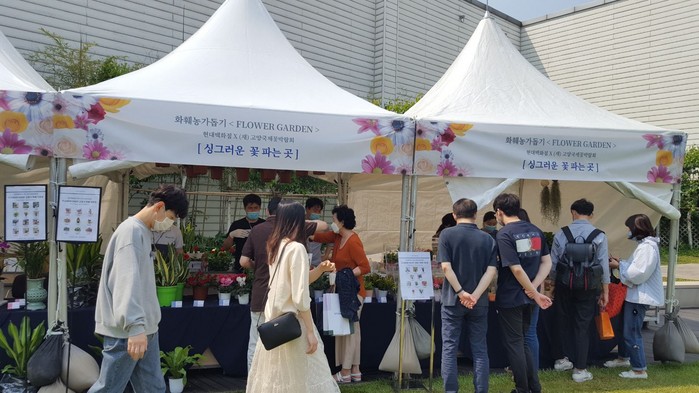 재단법인 고양국제꽃박람회(이사장 이재준)는 5월 29일부터 6월 7일까지 현대백화점 킨텍스점과 함께 추진한 화훼 농가 돕기 ‘화훼 판매장’을 성공적으로 마무리했다. 공기 정화 식물, 다육식물 등 고양시 화훼 농가에서 생산한 다양한 화훼를 구매하기 위한 시민들의 발걸음이 이어졌다. 꽃박람회 재단은 시민들이 쉽게 꽃을 접할 수 있도록 관내 다중이용시설 등과 연계한 화훼 소비 운동을 지속적으로 추진해 나갈 방침이다.(사진=고양시 제공)