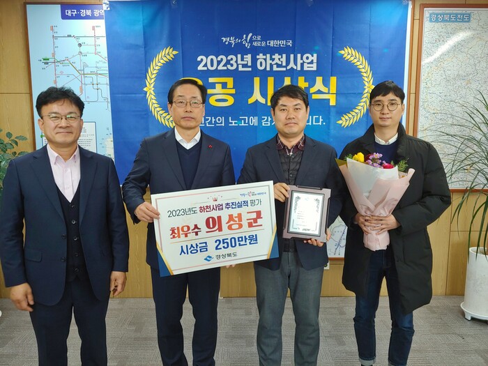 [로컬세계=박성 기자]경북 의성군은 경상북도에서 실시한 '2023년 하천사업 추진실적 평가'에서 지난해에 이어 4년 연속‘군부 최우수상’을 수상했다고 2일 밝혔다.