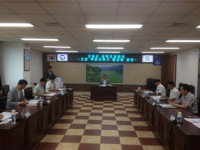 군은 10일 군청 상황실에서 김상호 고창군부군수와 군장대 황만길 교수, 우석대 황태규 교수, 전북연구원 김수은 박사 등 전문가들이 참석한 가운데 지역 현안 문제를 효과적으로 해결하기 위한 정책조정회의를 개최했다.