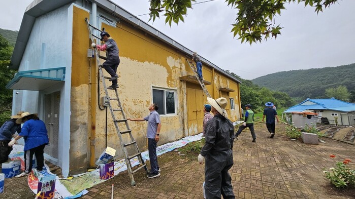 [로컬세계=박상진 기자]경북 의성군 안사면(면장 김춘식)에서는 지난 17일 안사면 만리2리 경로당 일대 주민건강증진체육공간(러스틱하우스)에서 의성군종합자원봉사센터와 협업을 통해 농촌재능나눔(농촌맞춤형봉사활동) 벽화그리기 봉사활동을 전개했다고 18일 밝혔다.