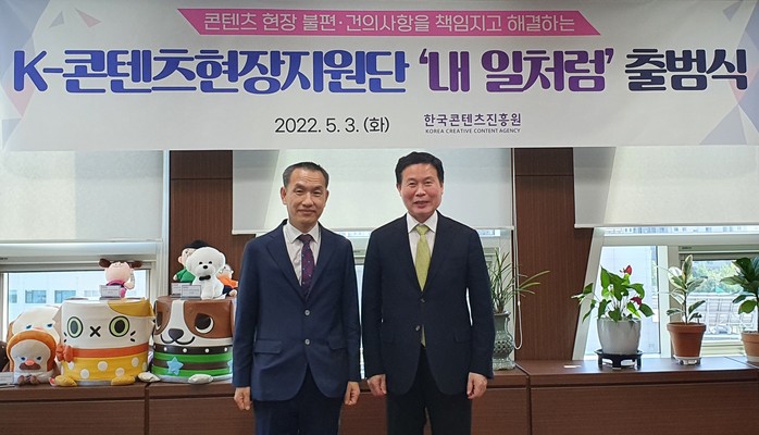 한국콘텐츠진흥원(원장 조현래, 이하 콘진원)은 불합리한 규제를 혁파하고 기업의 불편‧건의사항을 해결하여 콘텐츠산업 성장에 활력을 불어넣는‘K-콘텐츠현장지원단 내 일처럼(이하 K-콘텐츠현장지원단)’을 3일 공식 발족했다.