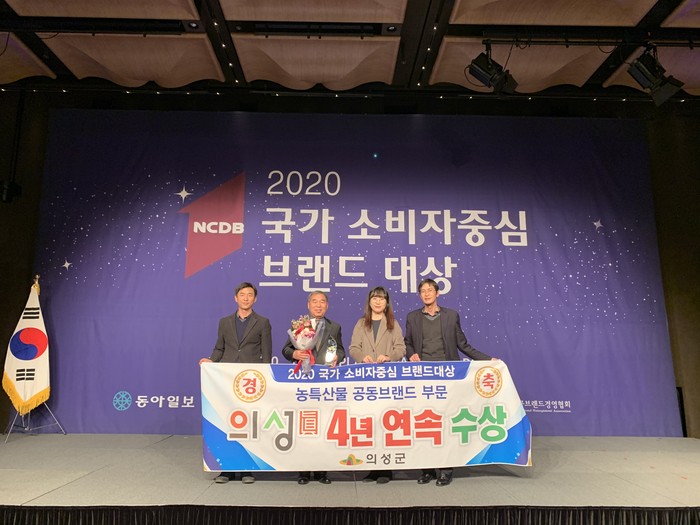 [로컬세계 박상진 기자]경북 의성군의 대표 농·특산물 공동브랜드 ‘의성 眞’ 지난 20일 서울 더 프라자 호텔에서 개최된 ‘2020 국가 소비자중심 브랜드 대상’에서 4년 연속 대상을 수상했다.