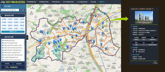 구로구는 “관내의 개발사업 현황을 한눈에 알 수 있는 온라인 서비스를 마련해 이달 본격적인 운영에 들어갔다”고 8일 밝혔다.