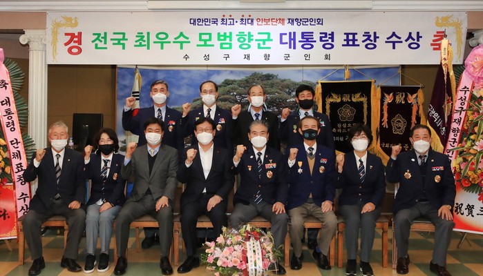 수성구 재향군인회는 지역과 향군 발전에 기여하고, 재향군인회의 화합, 안보단체의 구심점 역할, 지역사회 봉사활동 등에 힘써온 점을 높게 평가받았다.