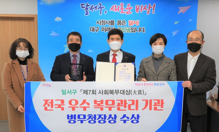 [로컬세계 박세환 기자]대구 달서구는 병무청 주관 ‘제7회 사회복무대상’에서 지역 최초로 전국 우수 복무관리 기관으로 선정돼 병무청장상을 수상했다고 17일 밝혔다.