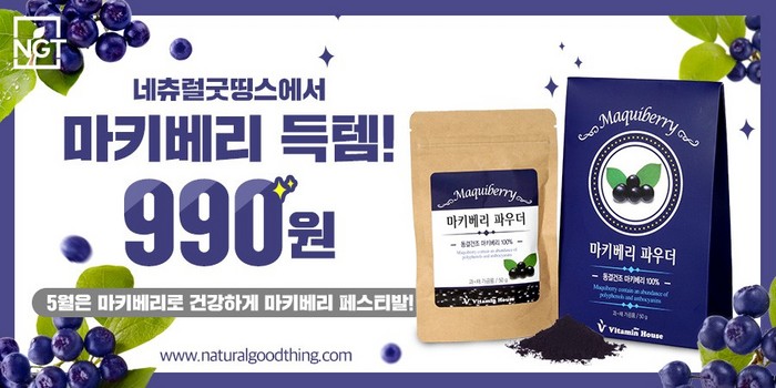 [로컬세계 박민 기자]프리미엄 건강기능식품 전문 브랜드인 네츄럴굿띵스(NGT)가 5월 가정의 달을 맞아 오는 5월 31일까지 온가족의 건강을 책임지는 '마키베리 페스티벌' 이벤트를 진행한다.