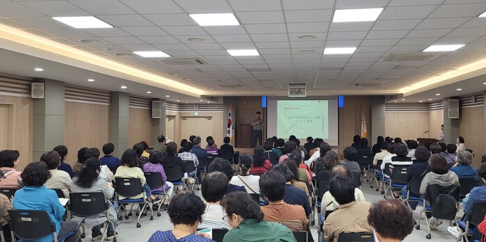 ▲부산 북구는 지난달 30일 구청에서 명예사회복지공무원 역량강화교육을 실시했다. 교육 장면. 북구청 제공 |