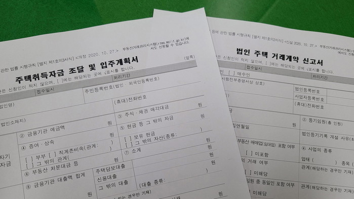법인이 주택 거래를 할 때는 법인 등기현황, 거래 상대방 간 특수 관계 여부, 주택 취득 목적 등의 내용이 포함된 ‘법인 주택 거래계약 신고서’를 추가 제출해야 한다.