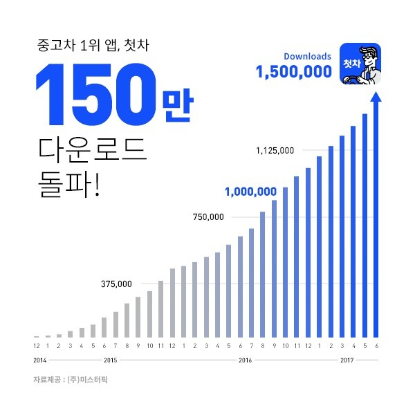 | ▲첫차는 서비스 3년차인 올해 150만 건 이상의 누적 다운로드 수를 달성했다. |