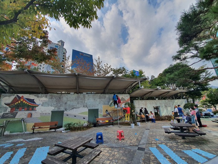 [로컬세계 맹화찬 기자]부산 금정구(구청장 정미영) 금정문화회관 야외광장이 주민들의 참여를 통해 다시 태어나고 있다.