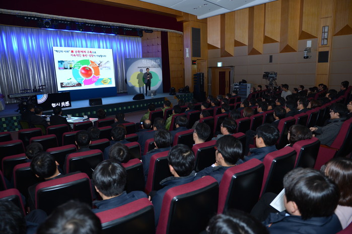 ▲K-water 본사 강당에서 열린 혁신콘서트에서 직원들이 혁신사례 발표를 듣고 있다. |