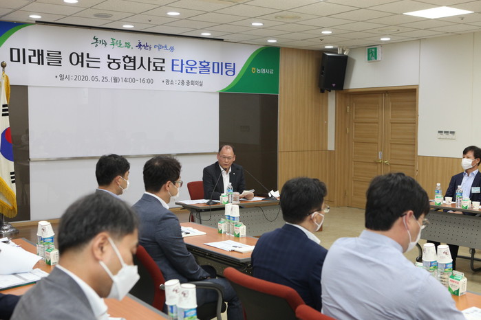 이날 타운홀미팅에는 코로나19 확산방지를 위해 지사무소장 등 농협사료 주요업무 담당자들 중 최소인원과 미래를 이끌어갈 공채직원들(1-5기)이 참석한 가운데 허심탄회하게 진행됐다.
