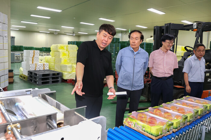 김 군수는 이날 점검을 통해 연일 지속되는 폭염상황에도 불구하고 자두‧복숭아 판매에 매진하고 있는 거점APC 관계자를 격려하고, 농가가 수확한 과실의 선별‧포장‧출하 등 유통과정 전반을 점검해 개선방안을 마련했다.