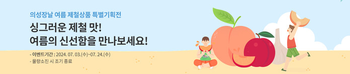[로컬세계=박상진 기자]경북 의성군는 여름 햇농산물 출하를 기념해 이달 3일부터 24일까지 3주간 의성군 대표 농특산물 쇼핑몰인 ‘의성장날’에서 기획전을 실시한다고 4일 밝혔다.