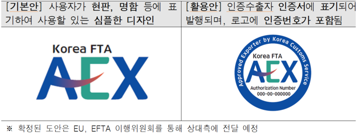 또 ‘인증수출자’를 협정(EU 등)에서 표기하고 있는 ‘Approved EXporter' 머리글자 사용하고 사용자 이해 편의를 위해 ‘Korea’, ‘FTA’ 문구를 삽입했다.