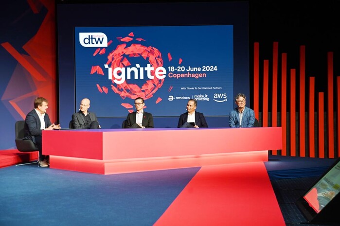 ▲현지시간 기준 18일 코펜하겐에서 열린 ‘글로벌 텔코 AI 라운드테이블’ 행사에서 SKT, 싱텔, e&, 도이치텔레콤 등 주요 경영진들이 패널토의 하는 모습 (사진 맨 오른쪽부터) SKT 정석근 글로벌/AI 테크 사업부장, 싱텔의 윌리암 우(William Woo) 그룹 정보기술 최고책임자, e&의 해리슨 렁 (Harrison Lung) 그룹 전략 최고책임자, 도이치텔레콤 얀 호프만(Jan Hofmann) AI 기술센터장 |