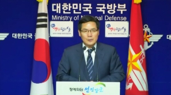 ▲ 국방부 김민석 대변인이 지난 15일 정례브리핑을 하고 있다.사진은 e-브리핑 화면캡처 |