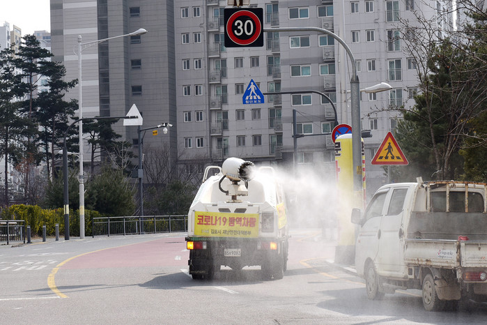 재난안전대책본부 방역대책반은 방역계획을 수립해 확진환자 주변 지역에 대한 긴급방역(1단계)을 실시하고 민간용역(2단계), 자원봉사 및 민간단체(3단계), 드론 및 차량이용 방역(4단계) 등 입체적 방역 시스템을 가동하고 있다.