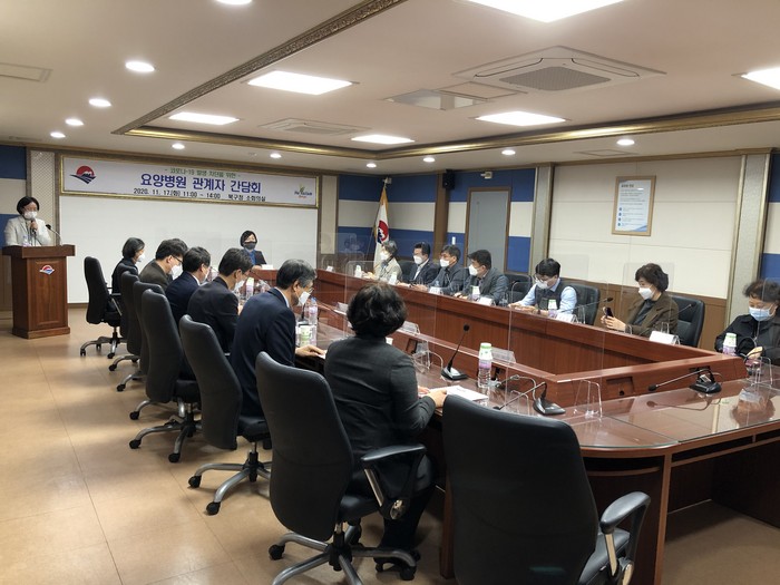 정명희 구청장 주재로 진행된 이날 간담회에는 민간 요양병원‧정신병원 대표자 및 보건소 관계자 20여 명이 참석했다.
