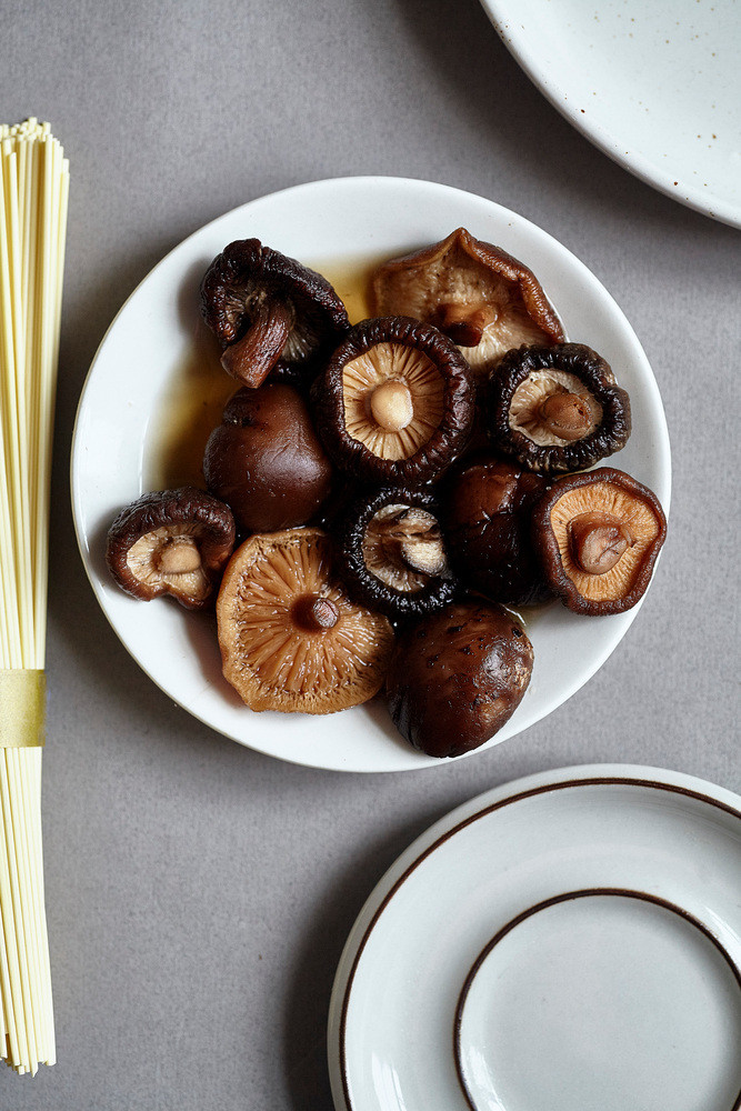다음은 넷플릭스 ‘셰프의 테이블’로 유명한 정관스님의 표고버섯조청조림 레시피다. 우선, 버섯이 적당히 잠길 정도의 물에 집간장과 들기름을 동량으로 넣고 끓인다. 이후 표고버섯과 편 썬 연근을 팬에 넣고 졸여주다가 마지막에 조청을 소량 넣어 한번 더 양념이 베도록 졸인다.