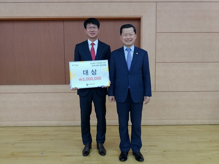 | ▲관세청은 지난 23일 행정안전부 주관 ‘2018년 국민생활밀접 민원제도개선 우수사례 경진대회’에서 직구물품 환급제도 개선을 위한 노력을 인정 받아 대상을 수상했다.(관세청 제공) |