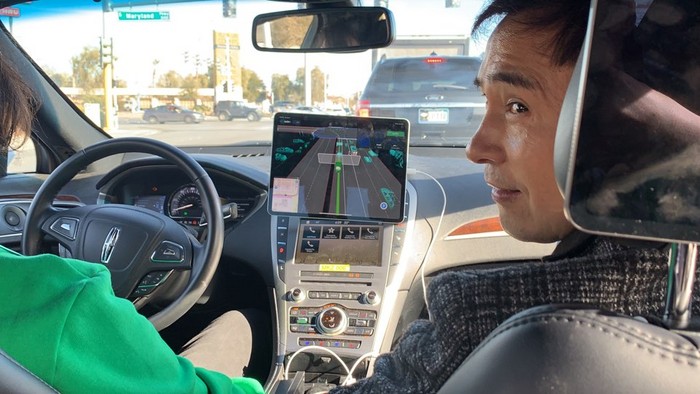 | ▲실리콘밸리 auto-x를 방문해 완전무인 자율주행차를 시승하고 있는 서철모 화성시장. |
