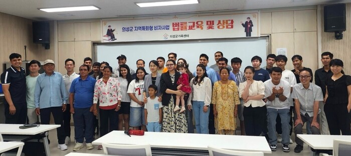 [로컬세계=박상진 기자]경북 의성군은 지난 4일 지역특화형 비자 사업으로 정착한 외국인과 동반 가족들을 대상으로 '2024 체류자격 교육 및 상담 프로그램'을 실시했다고 6일 밝혔다.