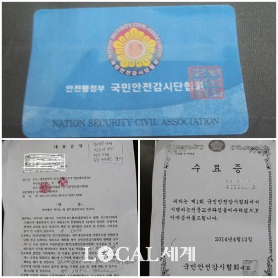 지난 4월 교육을 받으면서 교부받은 명함에는 분명 ‘안전행정부 국민안전감시협회’라는 글자와 국회를 상징하는 국화문양의 로고가 있었지만 확인결과 안전행정부에 등록된 단체가 아니었던 것이다.