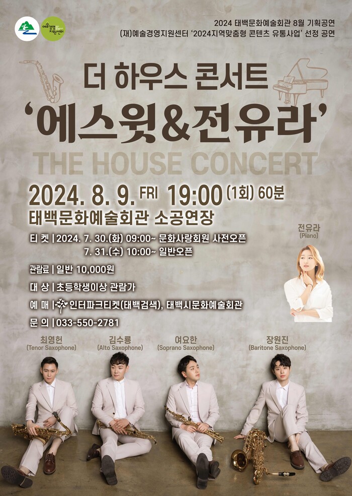 [로컬세계=박상진 기자]강원 태백시는 다음 달 9일 오후 7시에 태백문화예술회관 소공연장에서 태백문화예술회관 8월 기획공연으로 더 하우스 콘서트 ‘에스윗&전유라’를 개최한다.