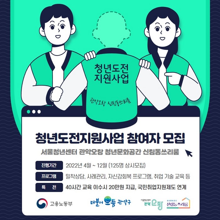 [로컬세계 임종환 기자]서울 관악구(구청장 박준희)는 ‘청년도전 지원사업’을 통해 취업을 포기한 청년의 사회진출 취업역량 강화에 나선다.