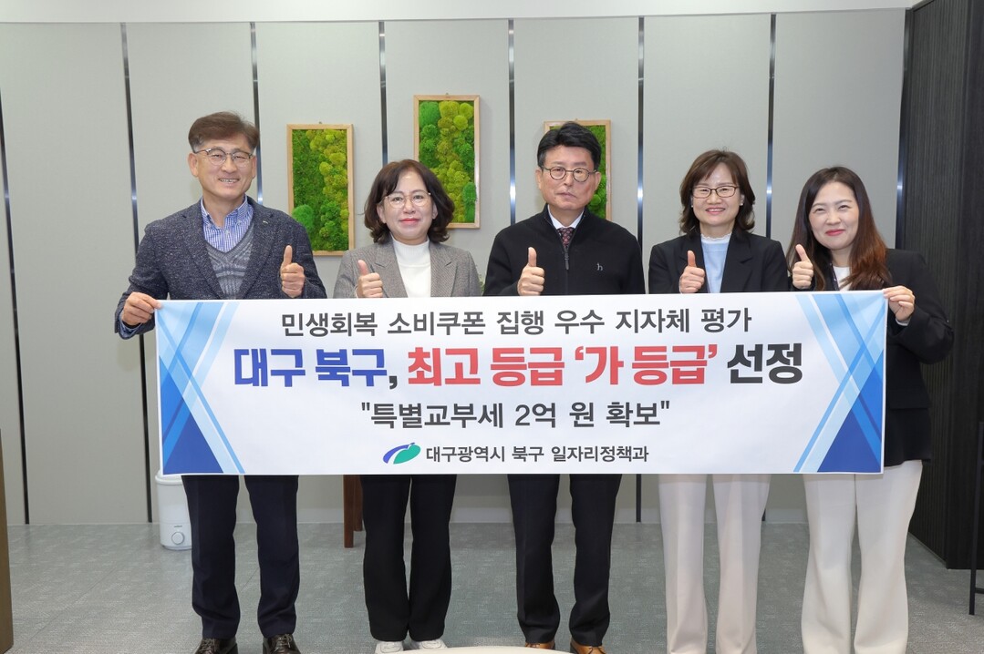 [로컬세계 = 박세환 기자] 대구시 북구청은 행정안전부가 주관한 ‘민생회복 소비쿠폰 집행 우수 지자체’ 평가에서 최고 등급인 가 등급에 선정돼 특별교부세 2억원을 확보했다고 16일 밝혔다.