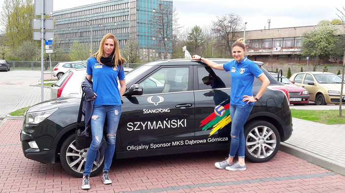 ▲쌍용차 폴란드대리점이 후원하는 폴란드 여자 배구 1부 리그 MKS 동브로바구르니차(Dabrowa Gornicza)팀 선수들이 티볼리를 받고 기념촬영을 하고 있다. |