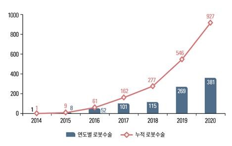 분당서울대병원 산부인과는 2014년 12월 다빈치 로봇수술 첫 케이스를 시작으로 매년 꾸준하게 수술 실적을 향상해왔다. 특히, 2019년부터 많은 의료진이 로봇수술에 참여하면서 가파른 성장곡선을 그렸고 마침내 2021년 2월을 기준으로 로봇수술 1000례라는 의미 있는 성과를 이뤄냈다.