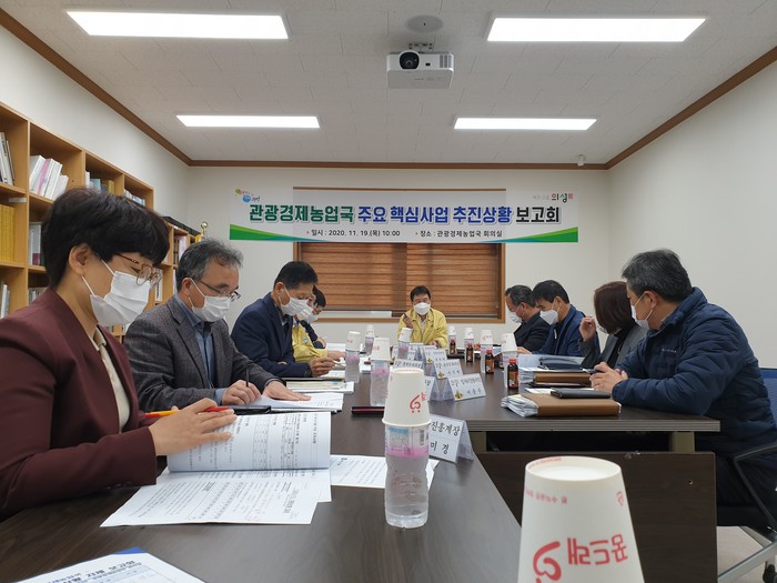 [로컬세계 로컬세계]경북 의성군은 지난 19일 관광경제농업국 회의실에서 2020년 관광경제농업국 주요핵심사업 추진상황에 대한 자체 보고회를 가졌다고 23일 밝혔다.