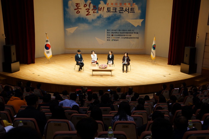 선문대(10월1일)와 경북대(10월28일)에 이은 세번째 충남대 ‘통일준비 토크 콘서트’에서 남북대학생들은 젊은 세대의 눈높이에서 통일한국의 가능성과 비전을 공감하며 ‘지금부터 통일준비에 대열에 나서 통일의 주역이 되자’는 결의로 콘서트를 마쳤다.