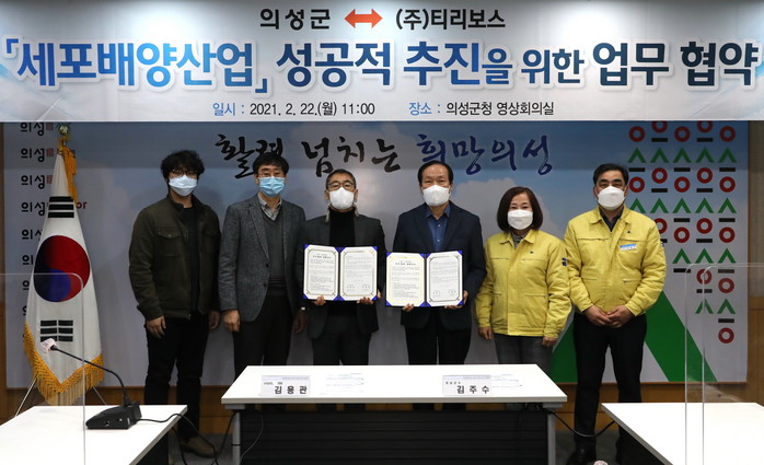 [로컬세계 박상진 기자]경북 의성군(군수 김주수)이 22일 세포배양산업의 성공적인 추진을 위해 (주)티리보스와 업무협약을 체결했다.